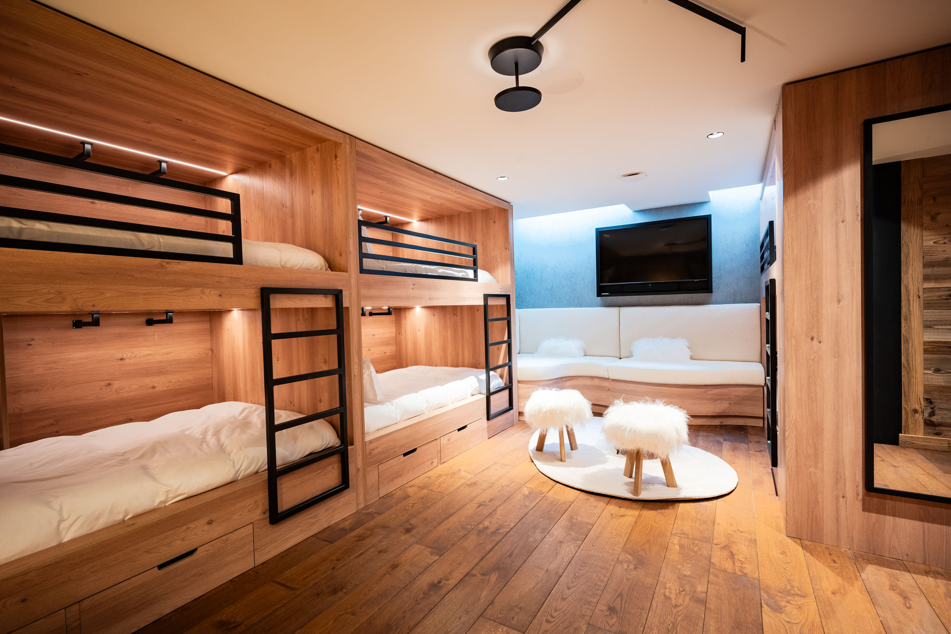 CONFORT : Télévisions – Système Sonos – Wifi – Ascenseur – Double garage – Ski room avec sèche-chaussures – Sauna – Hammam – Tisanerie – Spa de nage – Jacuzzi extérieur couvert – Salle de cinéma – Cave à vin – Grand garage – Borne de recharge électrique – Chalet manager – Piscine extérieure chauffée en été (en hiver, sur demande et en supplément).