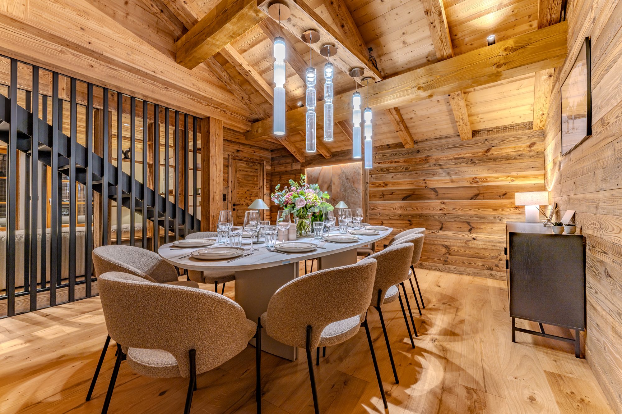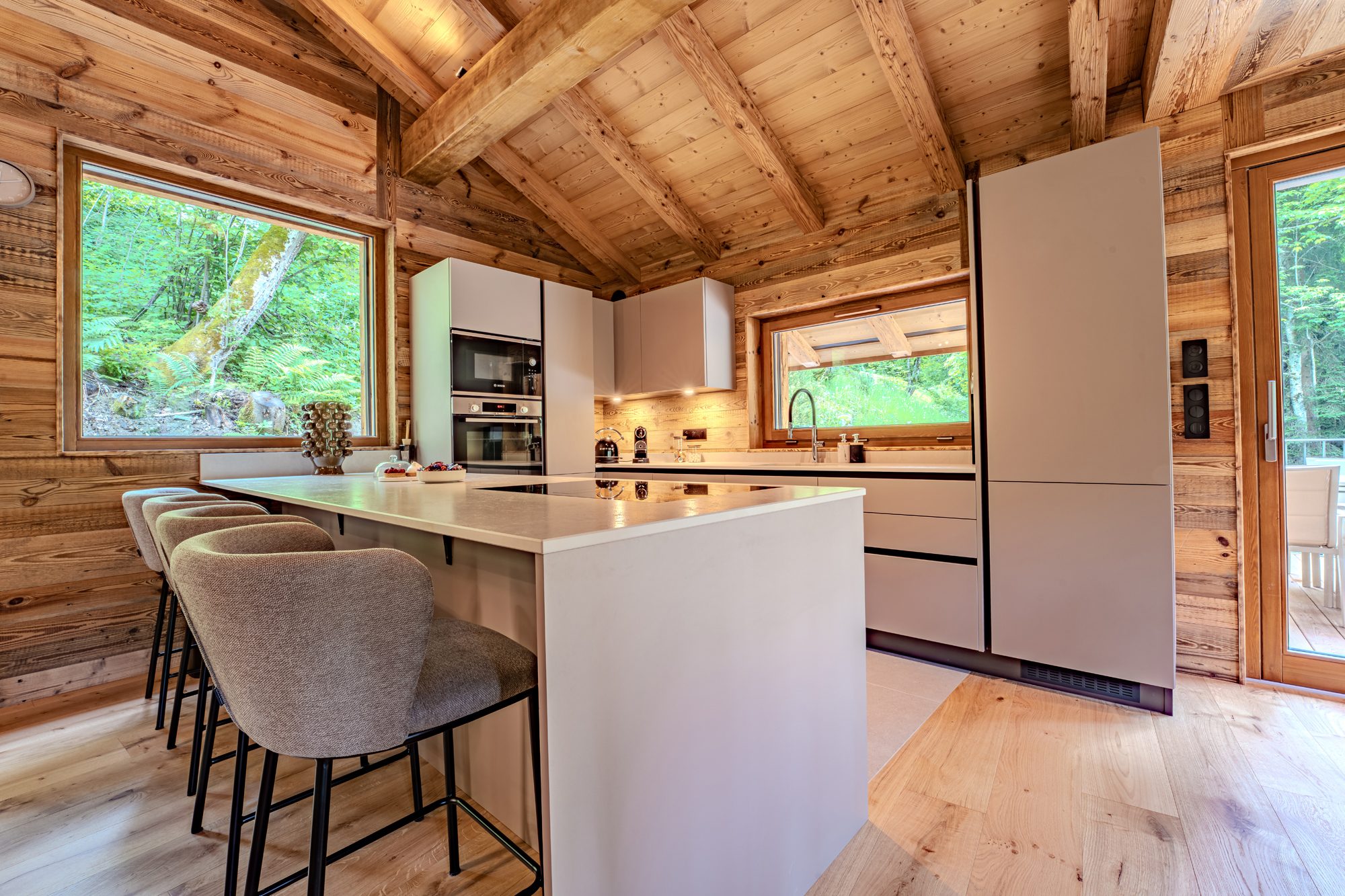 BAS DE ROCHEBRUNE, TRES JOLI CHALET RENOVE REF. 7777, au sein d’un secteur résidentiel et à proximité immédiate du centre de Megève, idéalement situé au calme, au fond d’une impasse, entouré de verdure et offrant une belle vue sur les montagnes. Etabli sur trois niveaux, sur environ 146 m², il offre, dans un esprit montagnard chaleureux et confortable : quatre chambres en-suite avec salle d’eau, (dont un dortoir enfants), une vaste pièce de vie avec une cuisine aménagée et équipée s’ouvrant sur l’espace salle à manger, contigu au salon, avec, sur le même niveau, l’accès à une spacieuse terrasse, accueillant un jacuzzi.