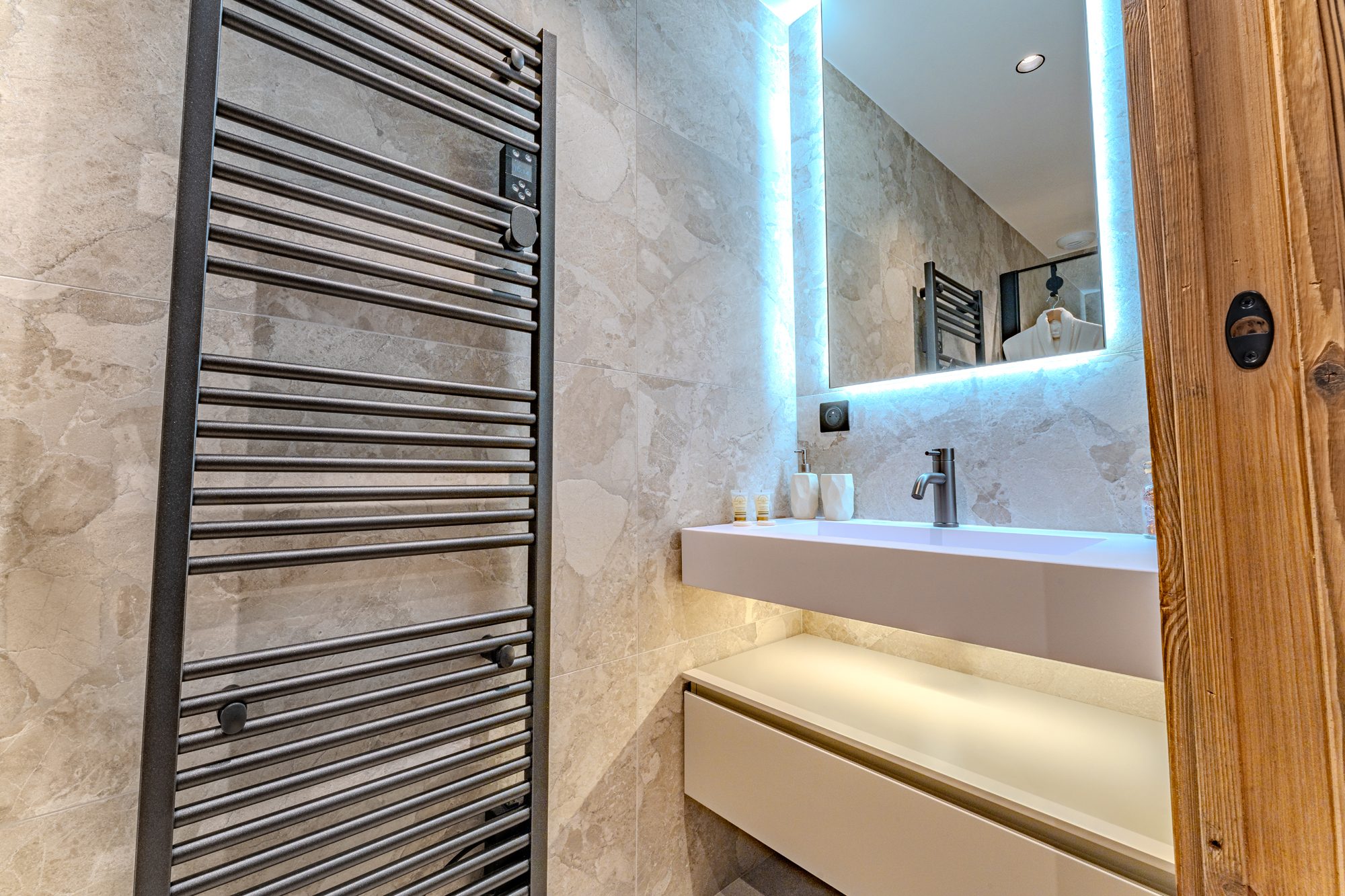 Jolies prestations avec buanderie, local à skis, sauna. Parking extérieur pour cinq véhicules.