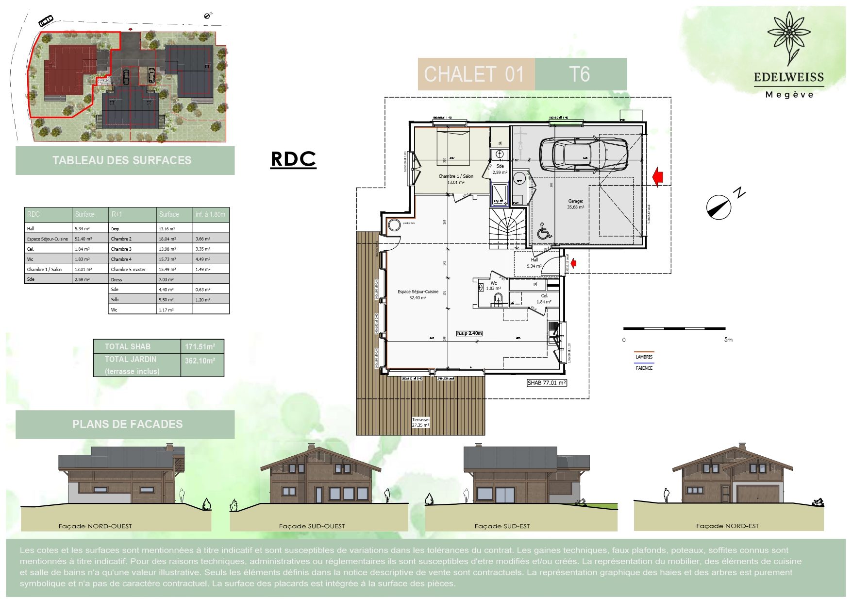 Le chalet sera établi sur une parcelle de terrain de 540 m² et aura une surface habitable de 171,51 m², pour une surface totale de 186,33 m². Garage double, jardin privatif avec terrasse de 362 m².