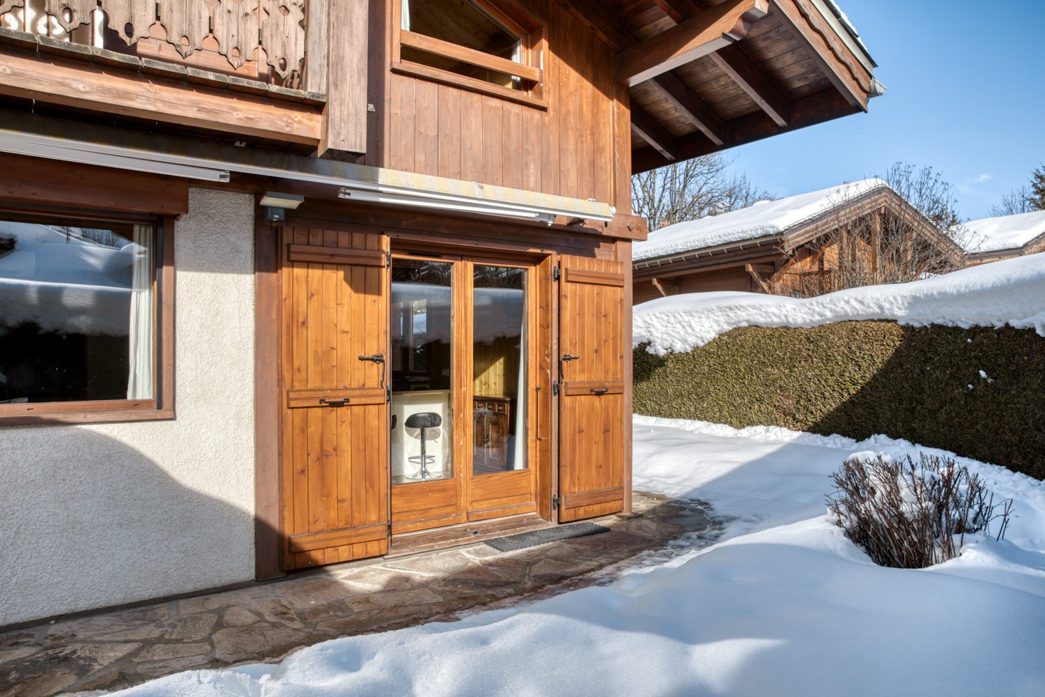 PROCHE CENTRE, CHALET MITOYEN REF. 7613, au sein d’une résidence établie au calme, à 7/8 mns à pied du centre du village. Ce chalet familial, très facile d’accès, propose sur trois étages : une vaste pièce de vie avec poêle à granules, cuisine ouverte équipée et s’ouvrant sur une terrasse, un local à skis ; à l’étage : quatre chambres, deux salles d’eau, des toilettes séparées et un escalier accédant à une cinquième chambre mansardée avec sa salle d’eau. Idéal pour les enfants : une salle de jeux aménagée avec coin salon TV ! Surface hab. : 142,38 m² / au sol : 165,27m².