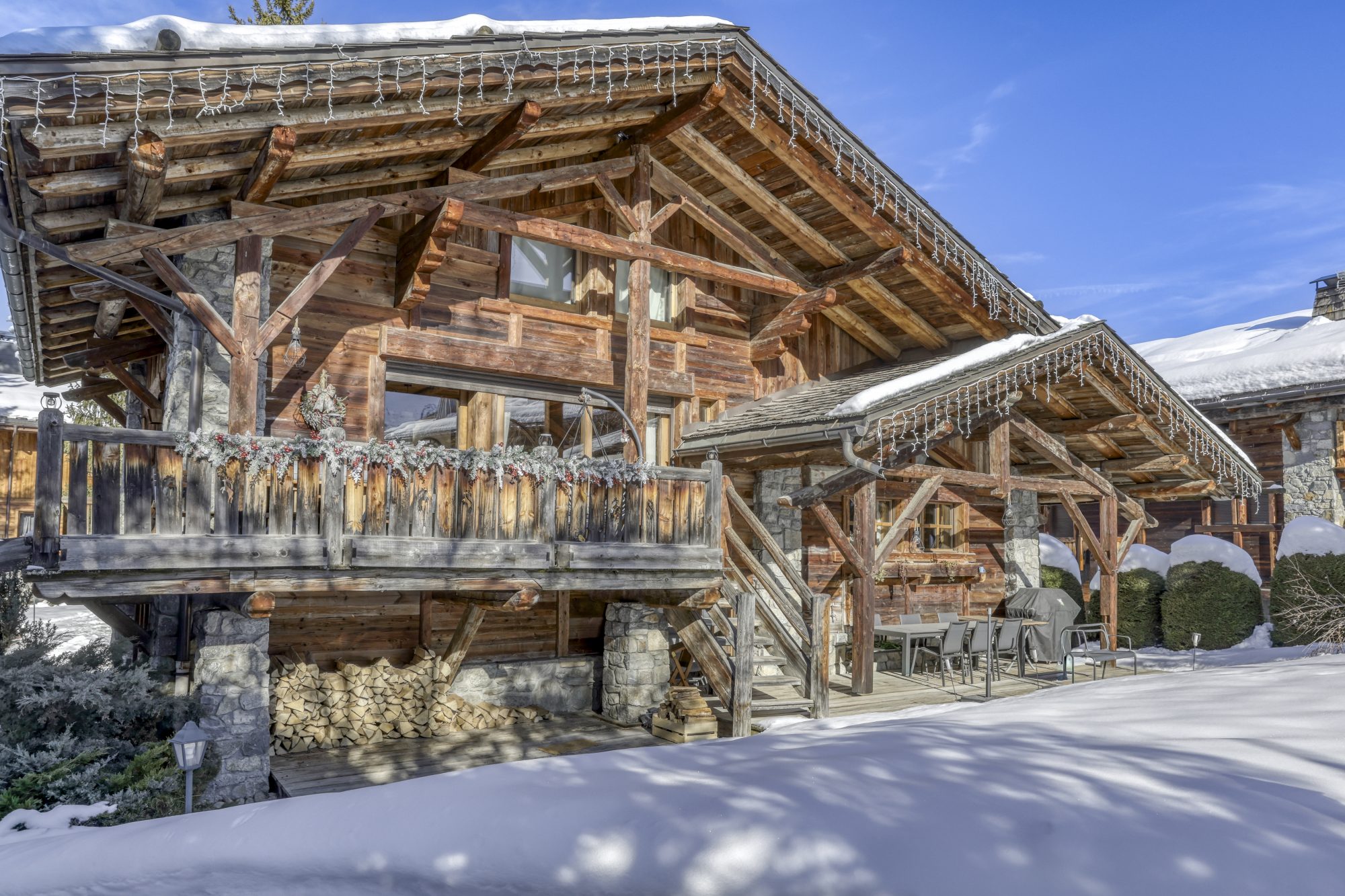 MONT D’ARBOIS – CHALET TRADITIONNEL 4 CHAMBRES REF 7644, situé à proximité immédiate des pistes de ski et du golf, dans un secteur résidentiel. Etabli sur 4 niveaux, ce chalet mêlant pierre et bois, offre de beaux volumes :