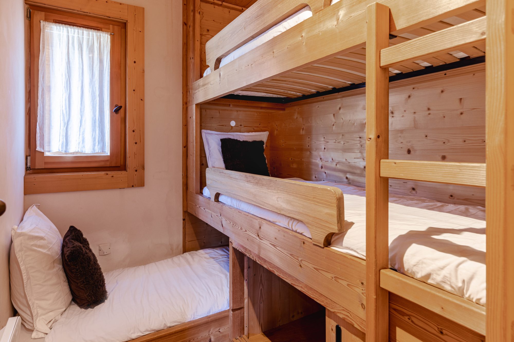 ROCHEBRUNE, APPARTEMENT REZ-DE-JARDIN DE DEUX CHAMBRES REF. 7737, au sein d’un chalet de seulement 2 copropriétaires. Etabli au calme, à proximité immédiate du centre du village et du téléphérique de Rochebrune, il comprend : une entrée avec toilettes indépendantes, s’ouvrant sur une pièce de vie avec cuisine ouverte ; une chambre double donnant sur une belle terrasse exposée Ouest, une chambre-cabine avec lits superposés, une salle de bains.